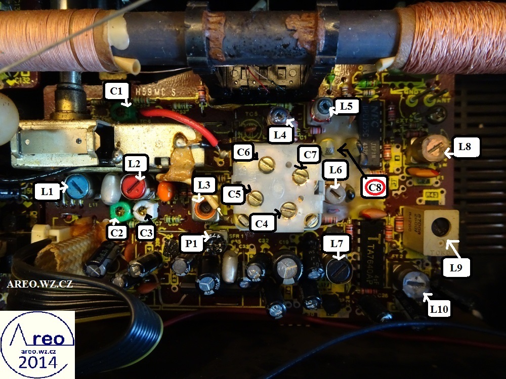 Toto je příručka pro nastavení FM části tuneru u radiomagnetofonu AIWA CS-250V. Seznam ladících prvků pro FM: P1, C4, L6, L8, L10. C4 společně s L6 posouvá stupnici výše, či níže. Na L6 je nutno přivinout 3 závity. C8 je nutno odebrat ze zapojení, aby se rozšířilo příjmané pásmo. P1 není moc nutno ladit, jen v jedné poloze se rádio může rozšumět a doporučuji dát na polovinu cesty. L8 ovlivňuje útlum hudby a bývá kousek od dorazu. L10, kousek od dorazu, je nutno nastavit tak, aby mělo rádio co největší odstup signálu od šumu. No a nakonec projíždět stupnici od spodu až nahoru a snažit se pomocí L6 a C4 srovnat tak, aby mělo rádio správně srovnanou hranici příjmu (aby to příjmalo danou frekvenci na stupnici tam, kde je požadována a aby se do stupnice vešlo celé CCIR pásmo). Citlivost tuneru po přeladění však není taková, jaká může být. Bohužel již nemám CCIR model tohoto tuneru, aby je bylo možno porovnat.