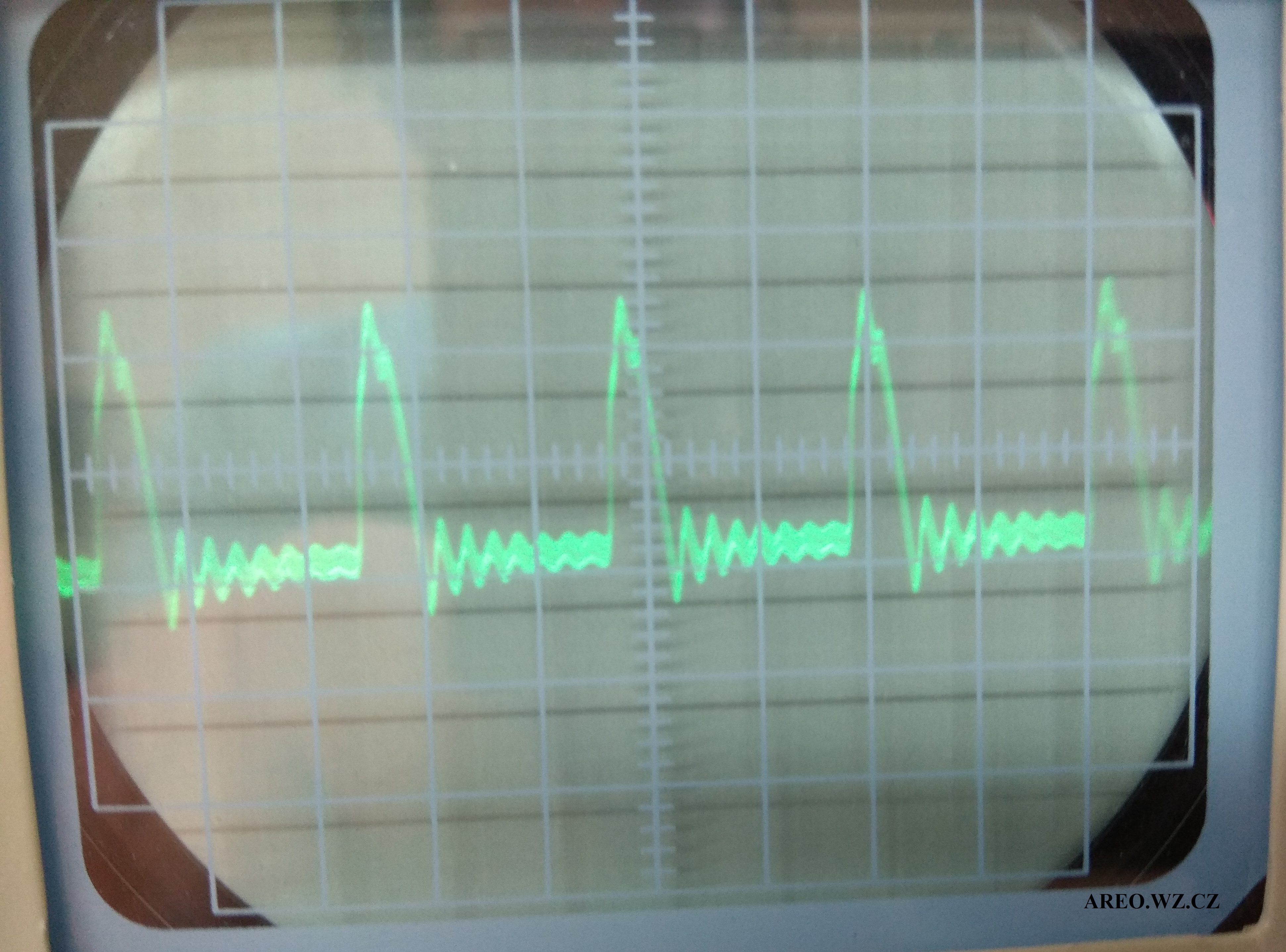 Měření průběhu napětí na VN výstupu transformátoru před násobičem 15kV sondou :-):
